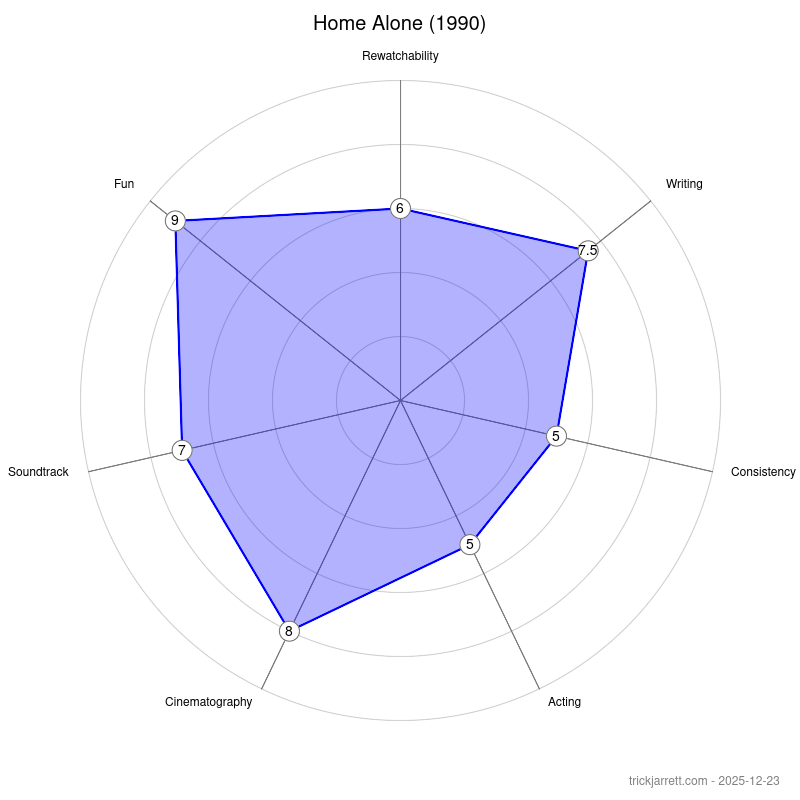 It's hard for me to explain why, but I found myself greatly disliking the second movie's decision to further rely on slapstick and painful moments with the thieves. I haven't watched Home Alone 2 in a long time and so the rewatch today made me realize how far it trails the first in my overall enjoyment.